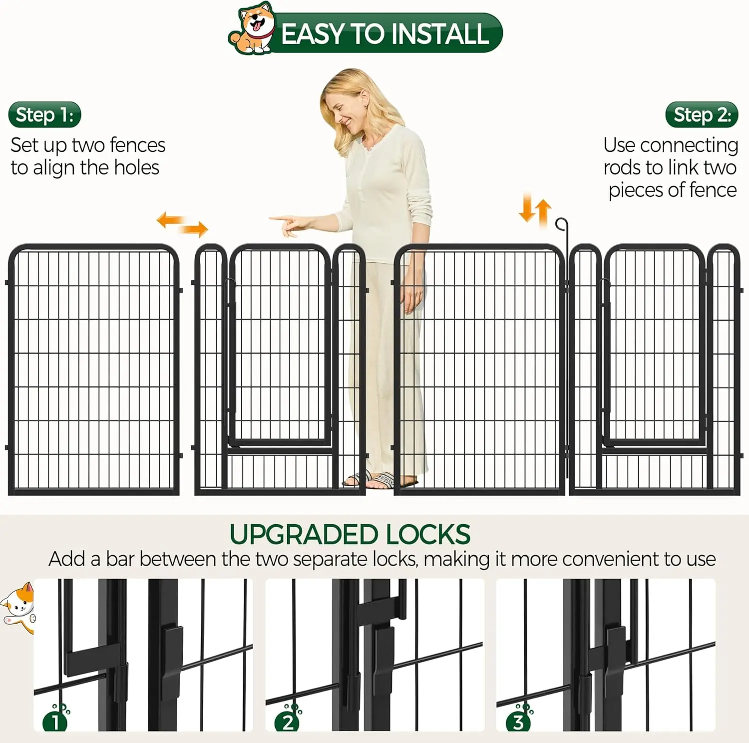40 Inch 8-Panel Heavy Duty Metal Pet Playpen for Indoor/Outdoor Use, RV Camping, Yard, Garden