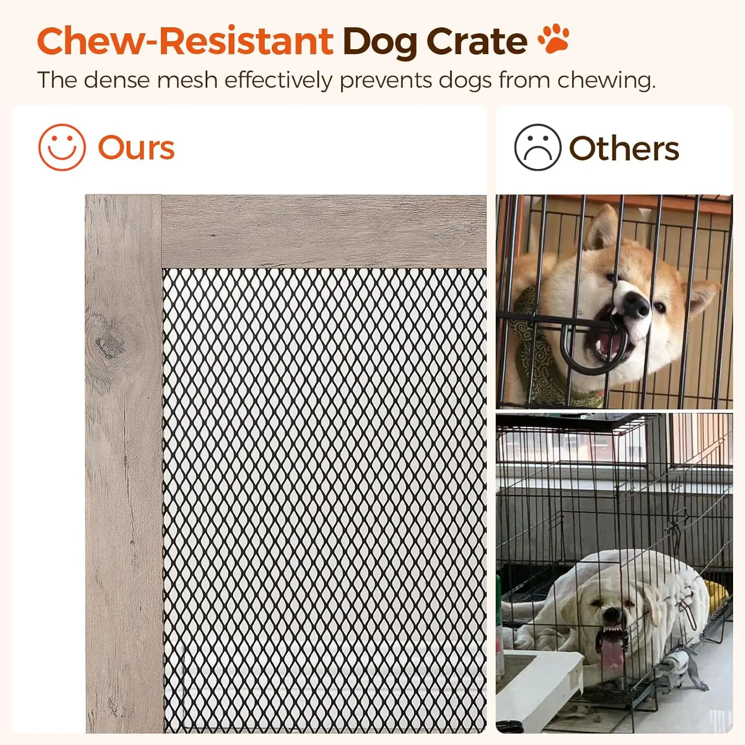 Transform your living space with this versatile corner dog crate furniture that combines functionality and style. Perfect for small to medium dogs up to 50 lb, it provides a cozy haven while maximizing corner utilization in homes. Key Features: - Corner Design: Fits snugly against walls to save space and enhance room aesthetics, ideal for apartments or compact areas. - Multi-Functional Use: Serves as a dog house, coffee table, side table, or TV stand with a sturdy top supporting up to 220 lb for storage and display. - Durable Construction: Made from high-quality engineered wood and metal mesh for stability, ventilation, and long-lasting performance. - Easy Assembly: Includes detailed instructions and accessories like expansion screws for quick setup based on wall conditions. Benefits: - Provides a warm shelter for pets to sleep and relax safely indoors. - Adds decorative charm as vintage-style furniture that blends with home decor. - Enhances practicality by offering extra surface area for household items. Ideal for pet owners seeking stylish solutions to integrate pet care into their living environment without compromising on quality or convenience.