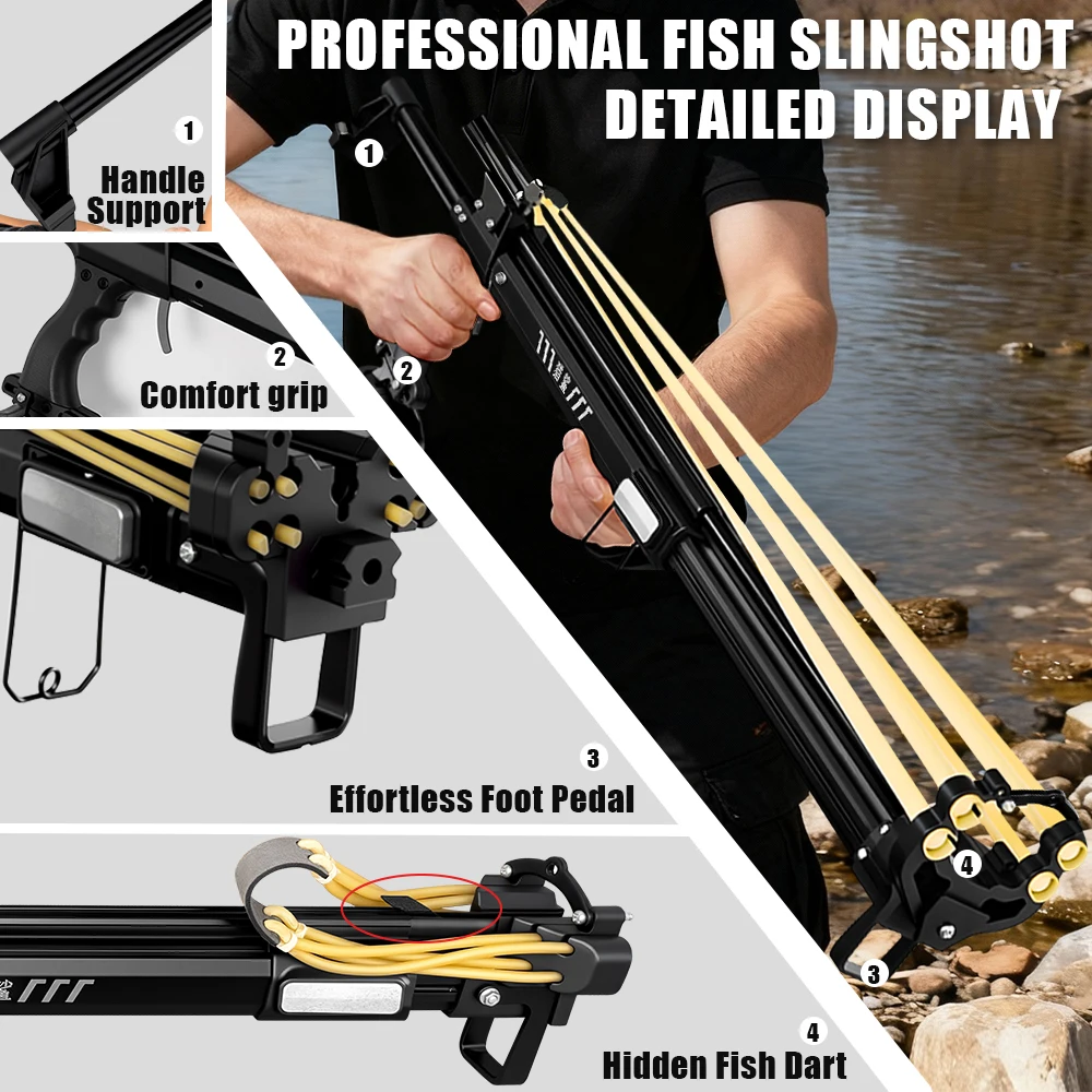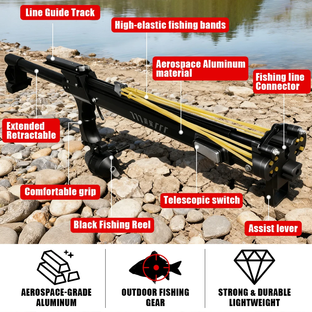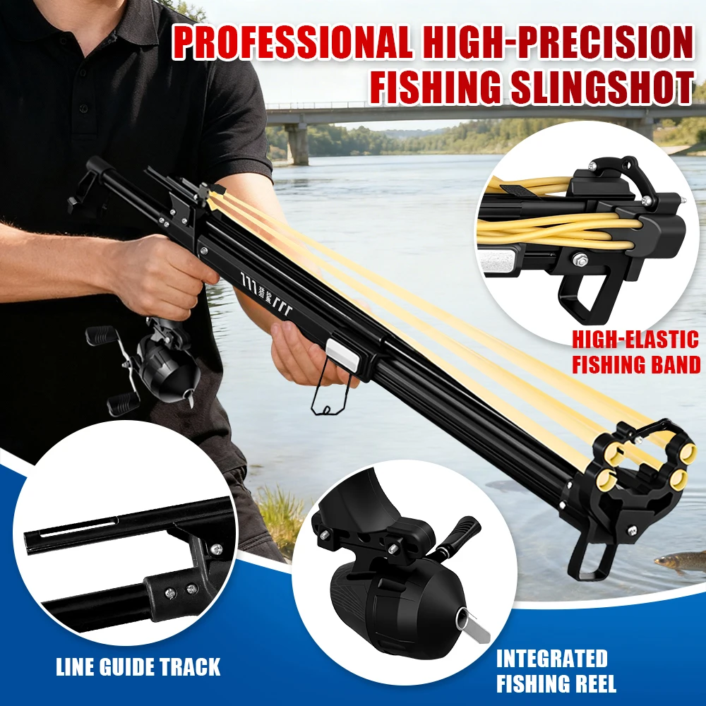 Heavy-Duty Fishing Slingshot, Professional Pole Stretching Shooting Catapult with Reel,Adjustable Telescopic Outdoor Fishing Use